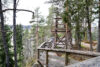 Parkkialueelta on puinen kävelysilta suoraan rakennuksille (esteetön siirtymä paikoitusalueelta).