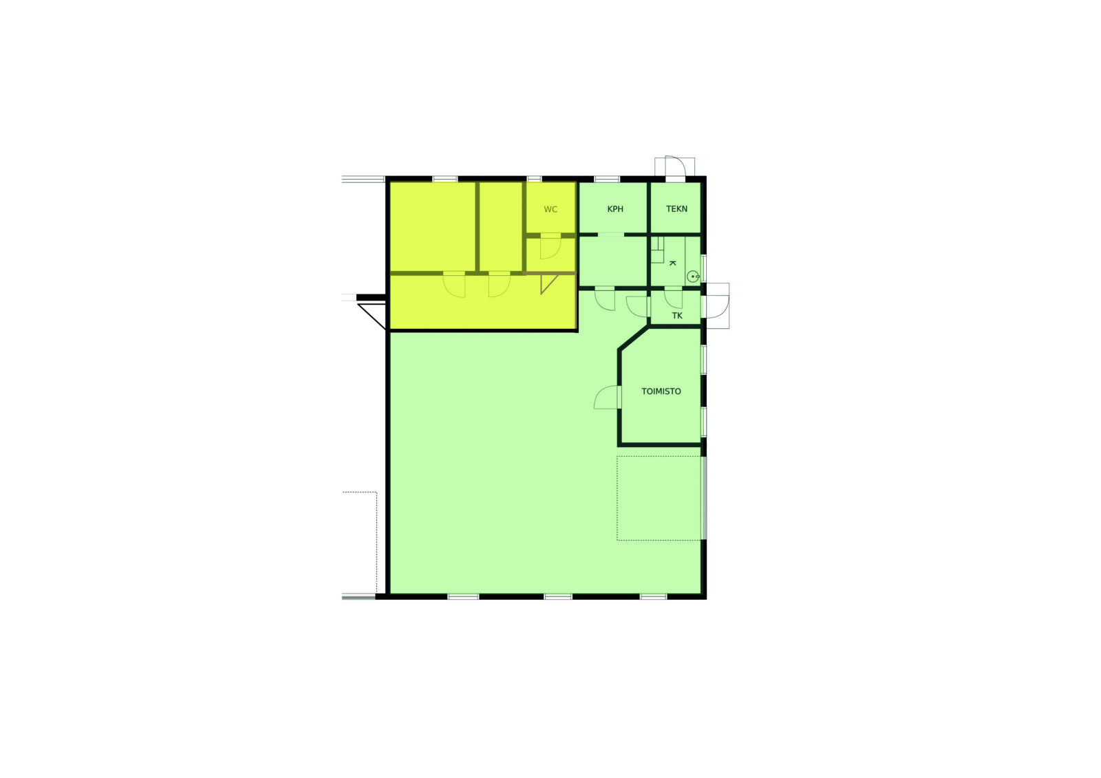 Kunto, varusteet ja palvelut: Hyvä kunto, toimistohuone, leveä ovi, wc