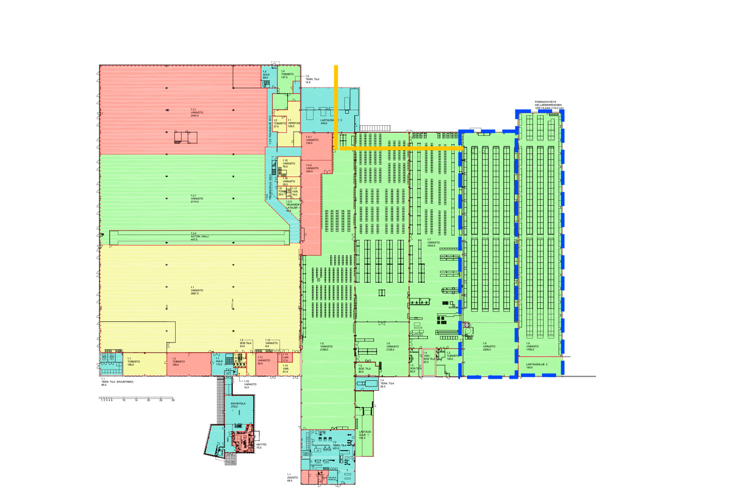 Käynti tilaan tällä hetkellä (koko kiinteistön yhteiskäytössä oleva) lastauslaiturin kautta, kts pohjakuvassa merkitty kulkureitti keltaisella viivalla.