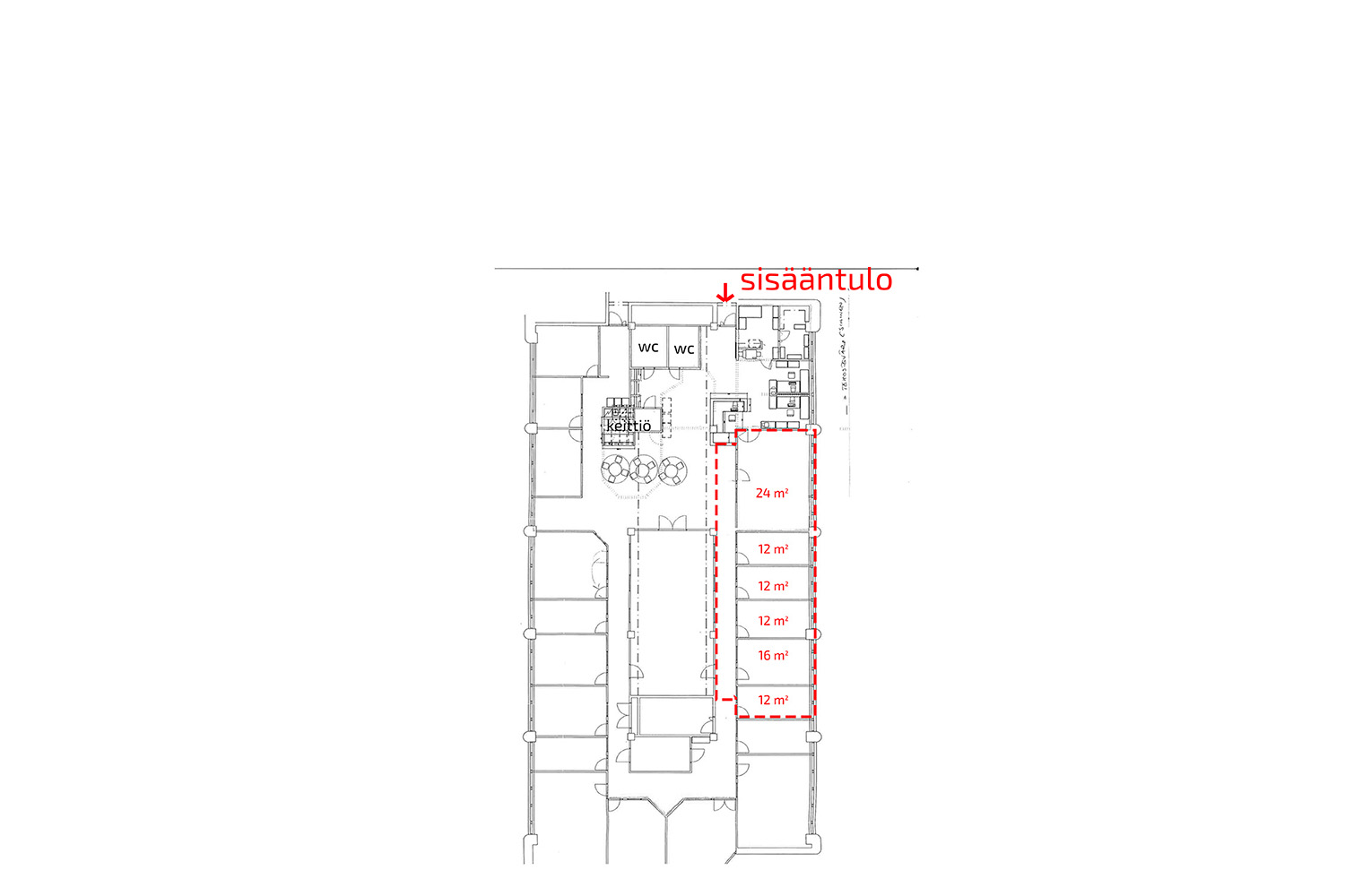 - Toimistohuone 12 m² hintaan 250 €/kk (yhteensä 5 kpl)