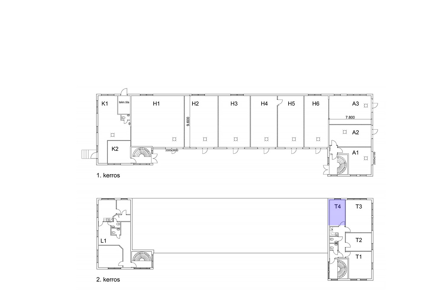 Hyväkuntoinen toimistotila (pohjakuvassa T4) vuokrattavissa Tapanilasta.