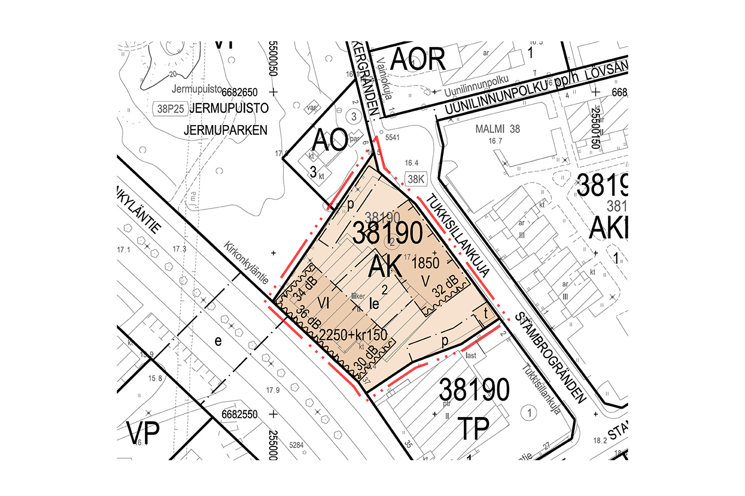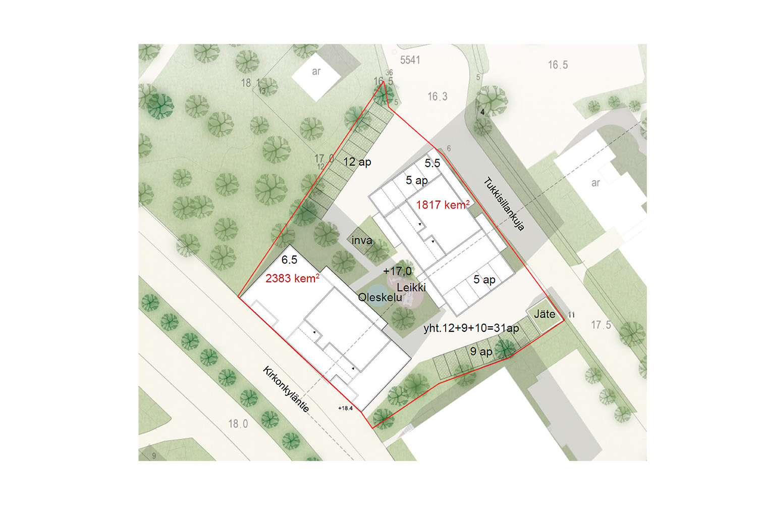 Rakennusoikeus: 4680 m² (Bruttokerrosalaa)
