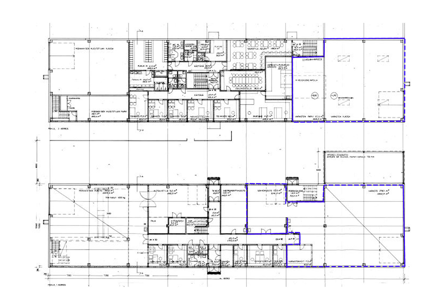 Huoneistoselitelmä: Korkeaa ja matalaa varasto- ja teollisuustilaa, toimistotilaa ja sosiaalitilat